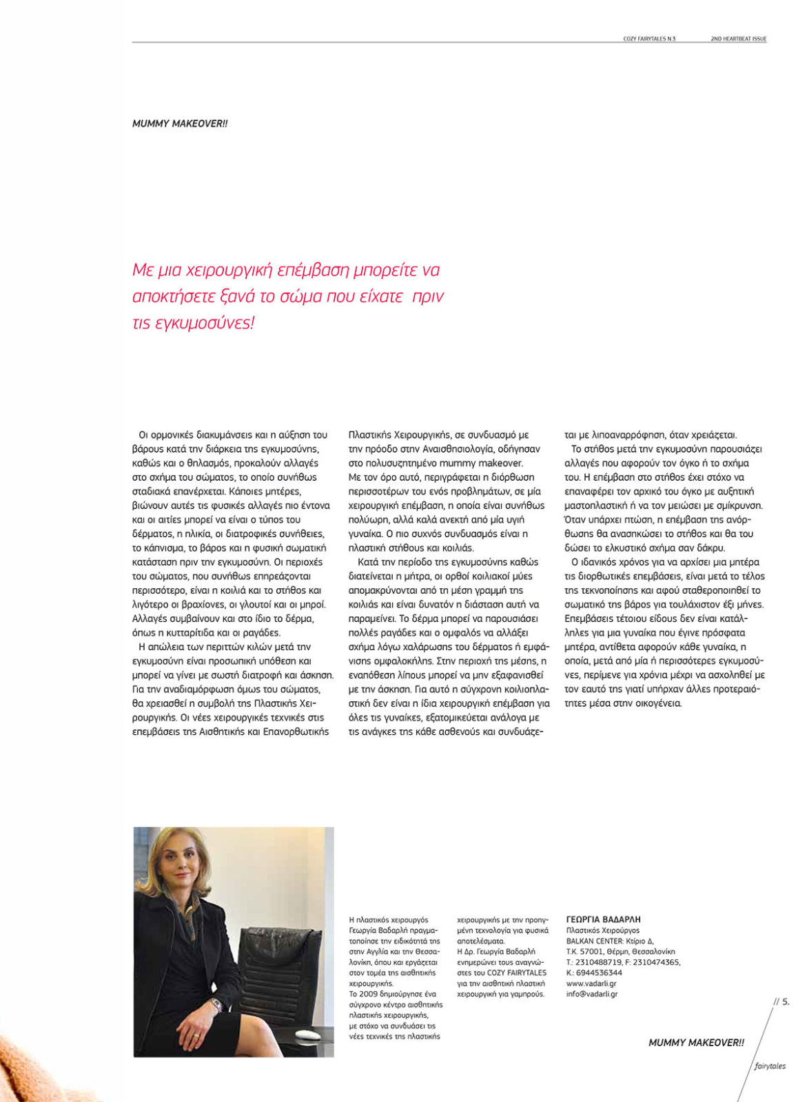 Από την πρώτη σας επίσκεψη θα ενημερωθείτε αμέσως από την υπεύθυνη του κέντρου Γεωργία Βαδαρλή, η οποία θα σας ενημερώσει με κατανοητό τρόπο και επιστημονική ακρίβεια για όλες τις λύσεις της Αισθητικής Χειρουργικής.